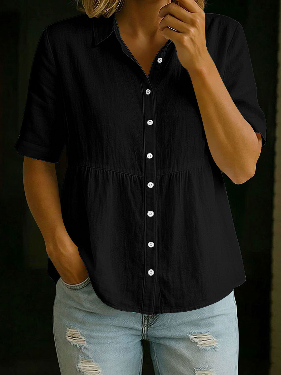 Women's Cotton And Linen Short-sleeve Shirt