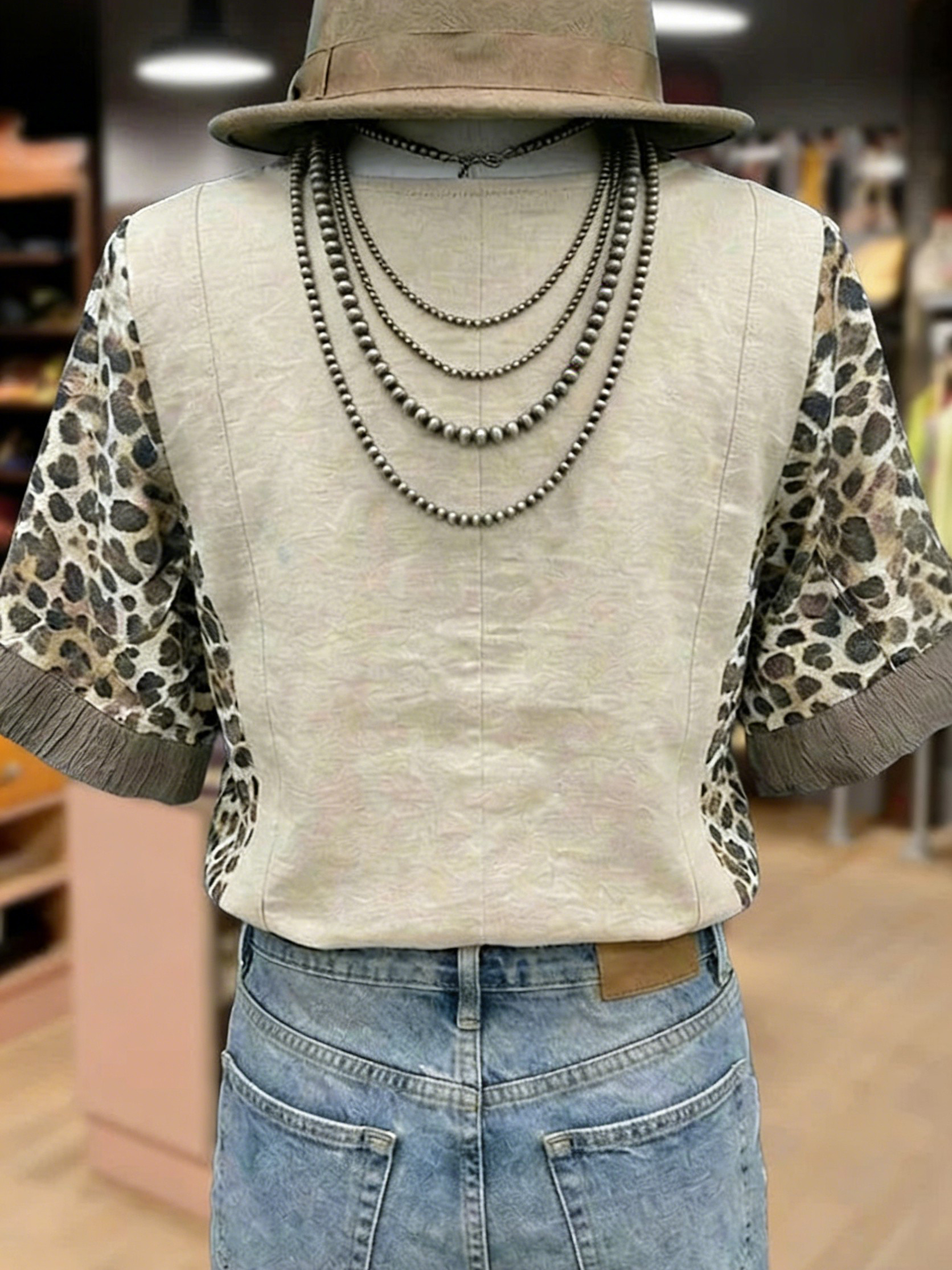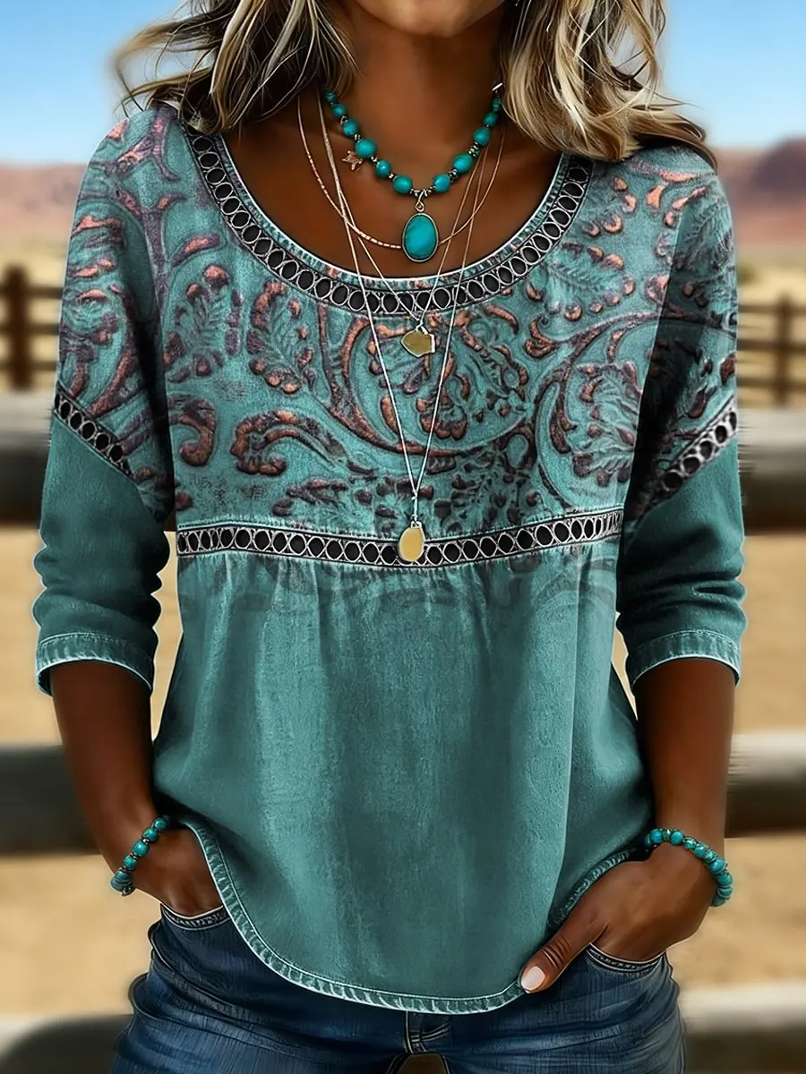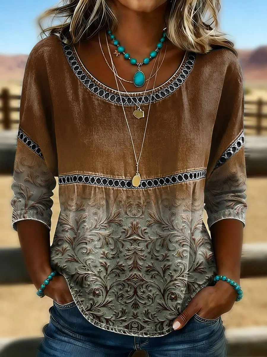 Women's Vintage Western Art Print Casual Top