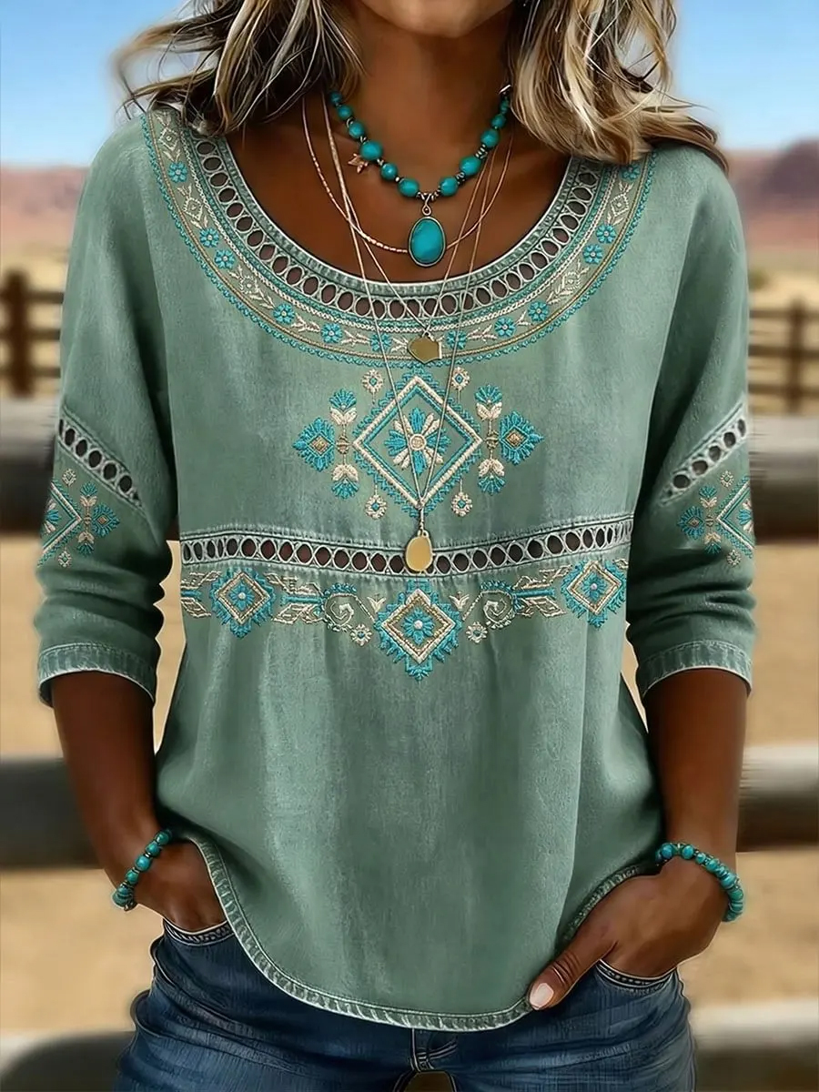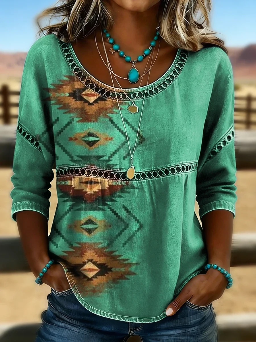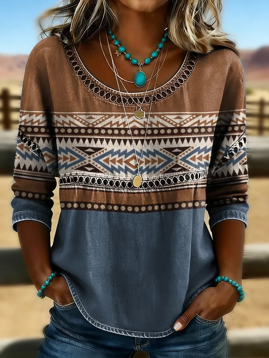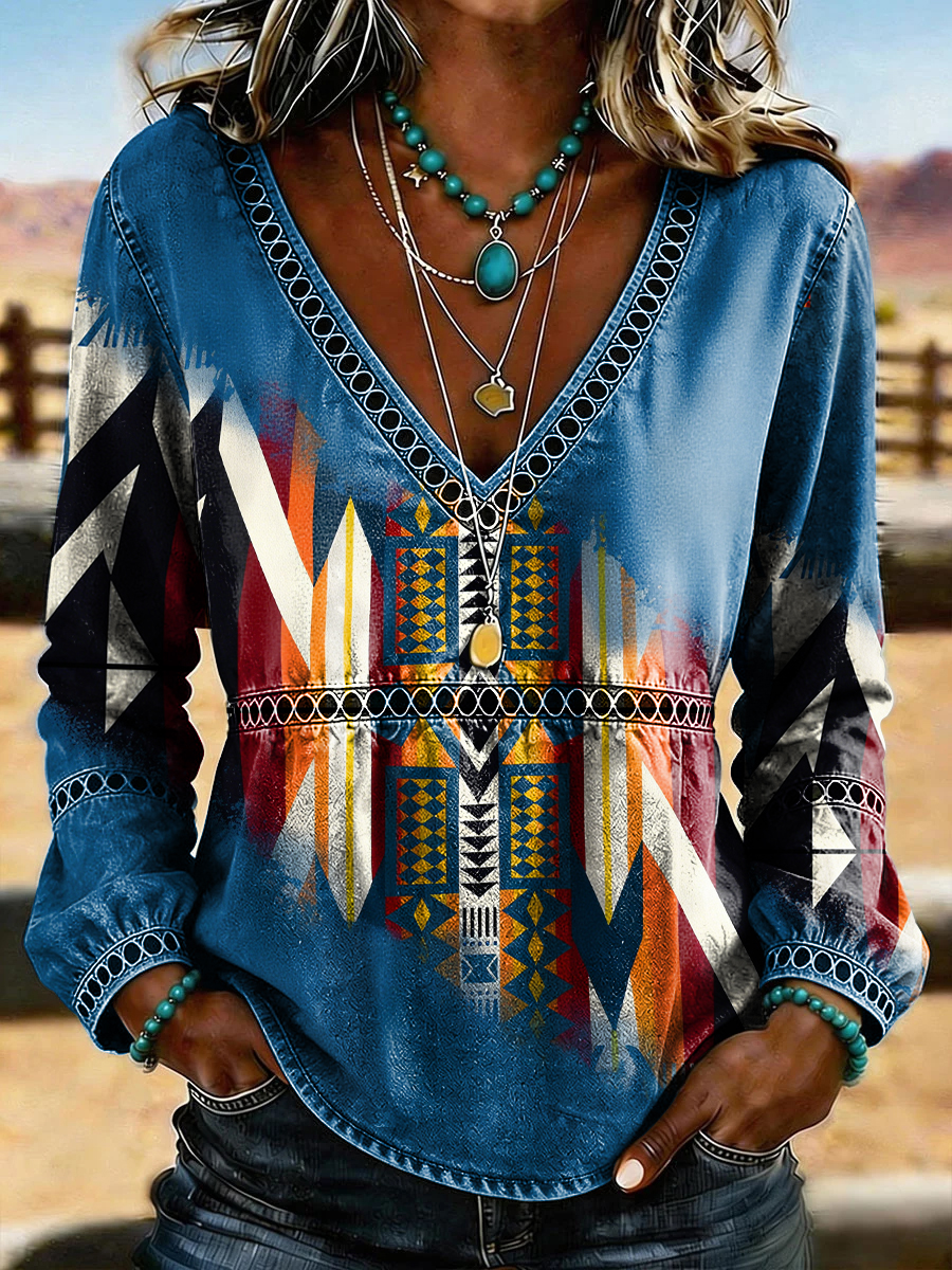 Women's Retro Western Aztec Print Casual Top