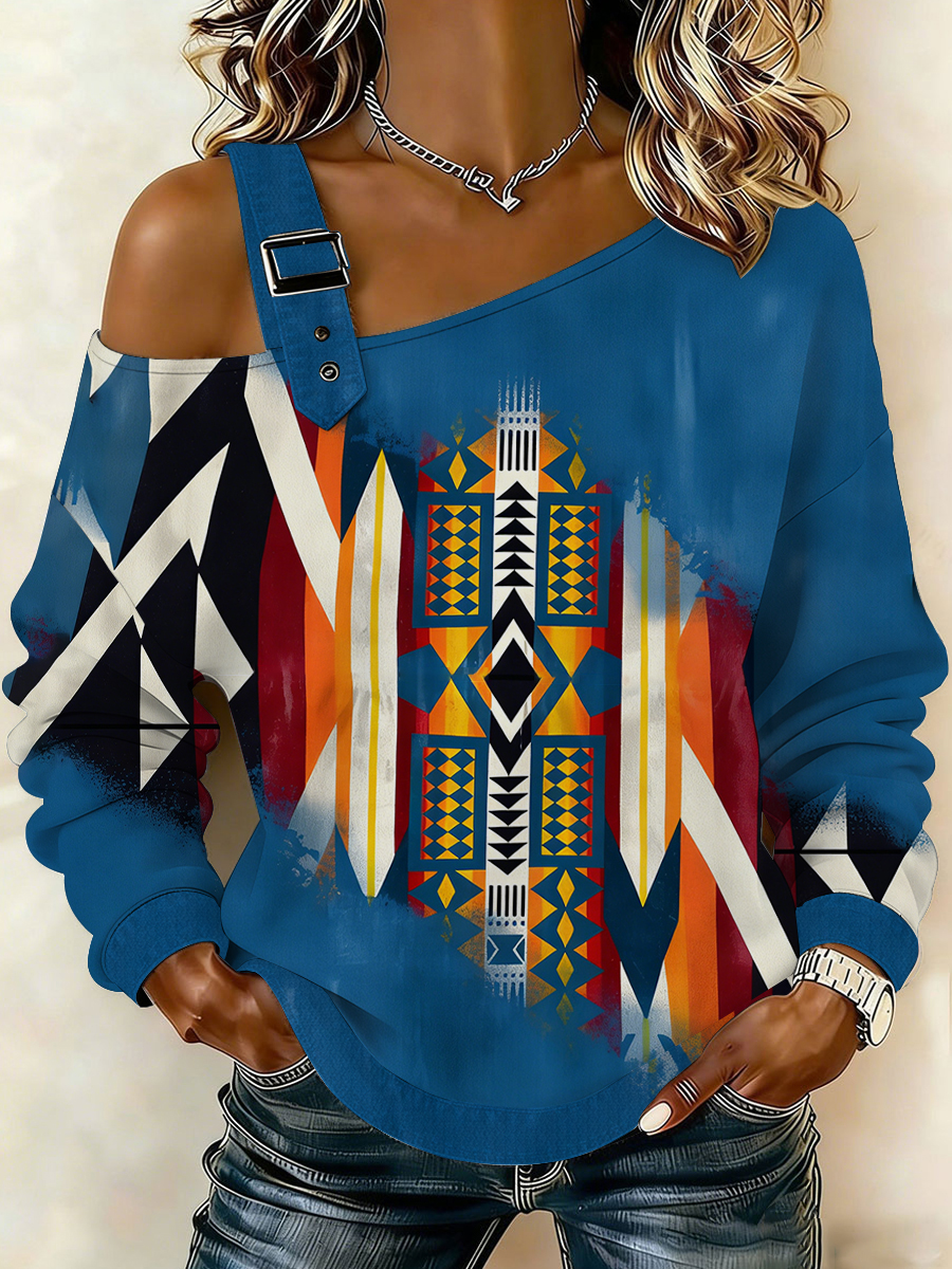 Women's Retro Western Aztec Print Casual Off-Shoulder Sweatshirt