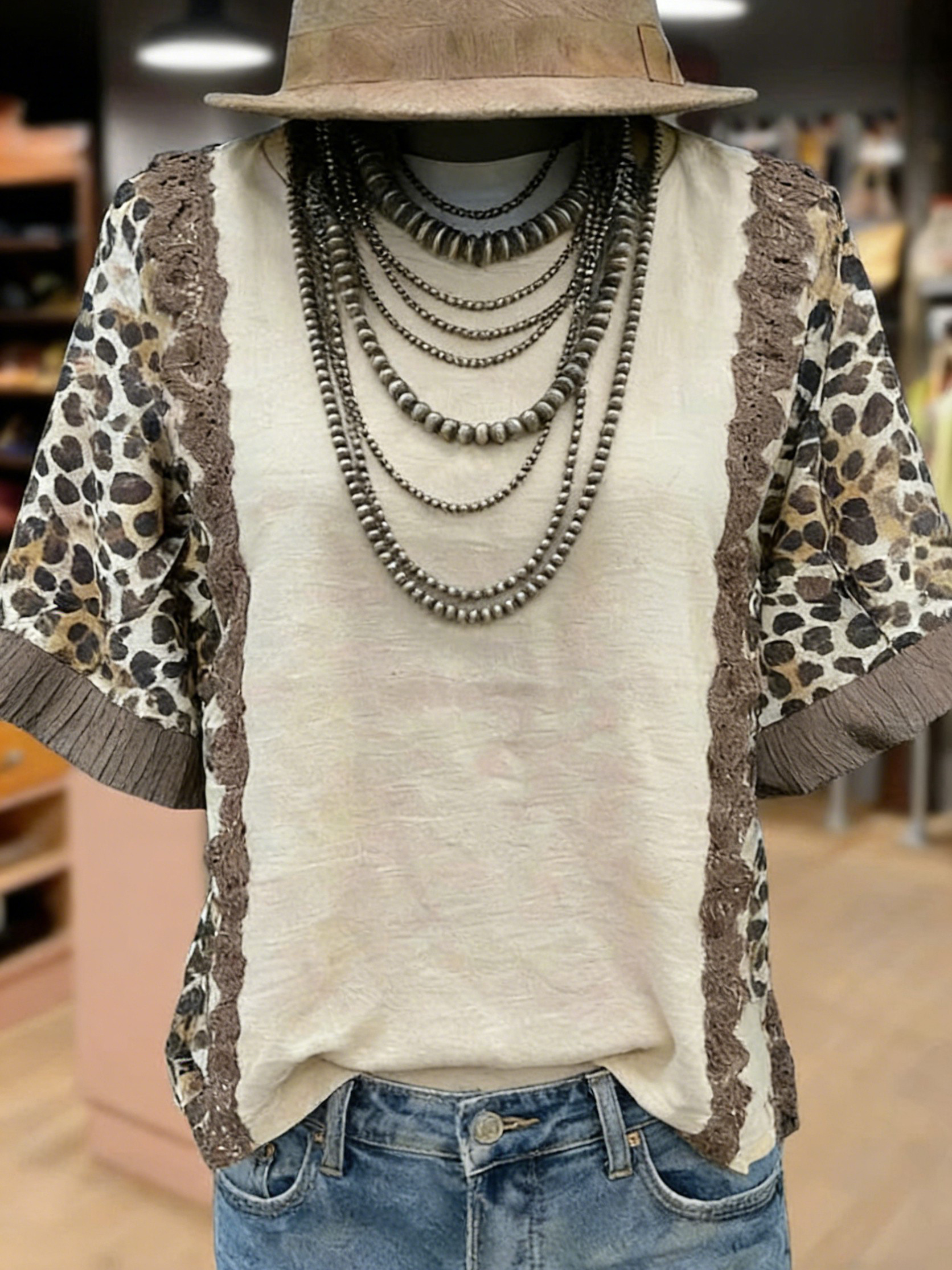 Women's Leopard Print Lace Patch T-Shirt