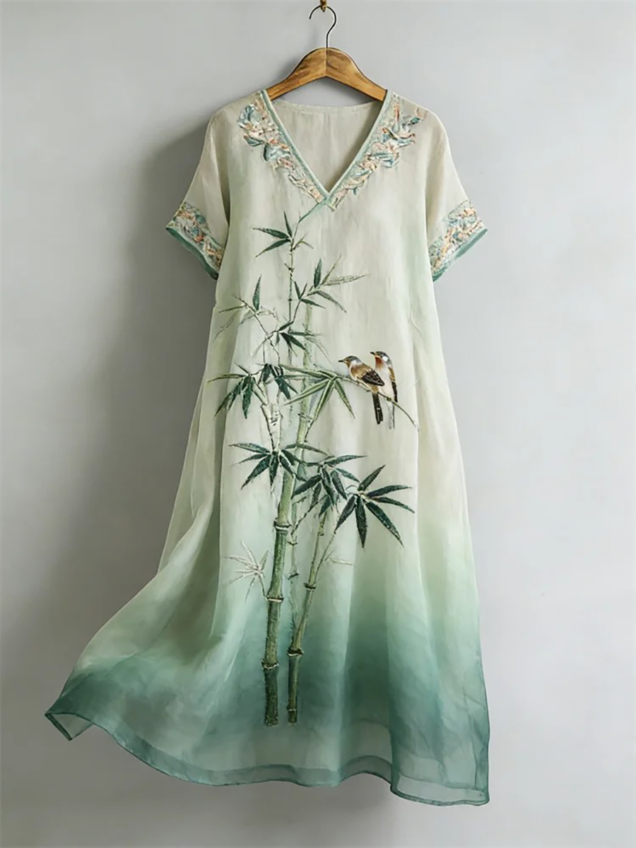 Women's Classy Japanese Landscape Art Linen Dress