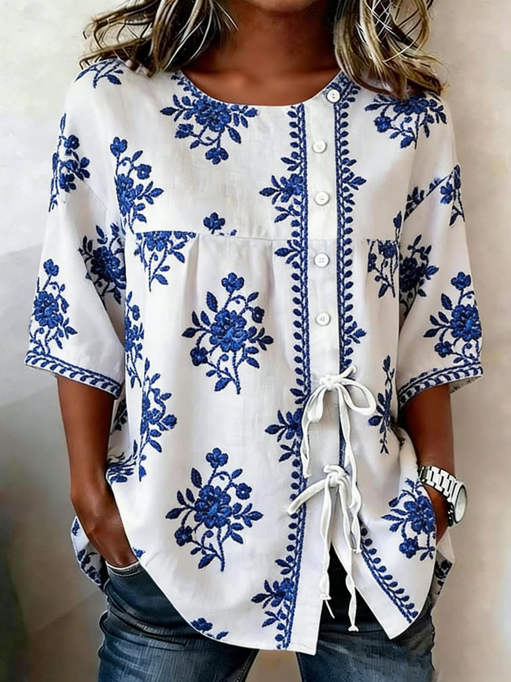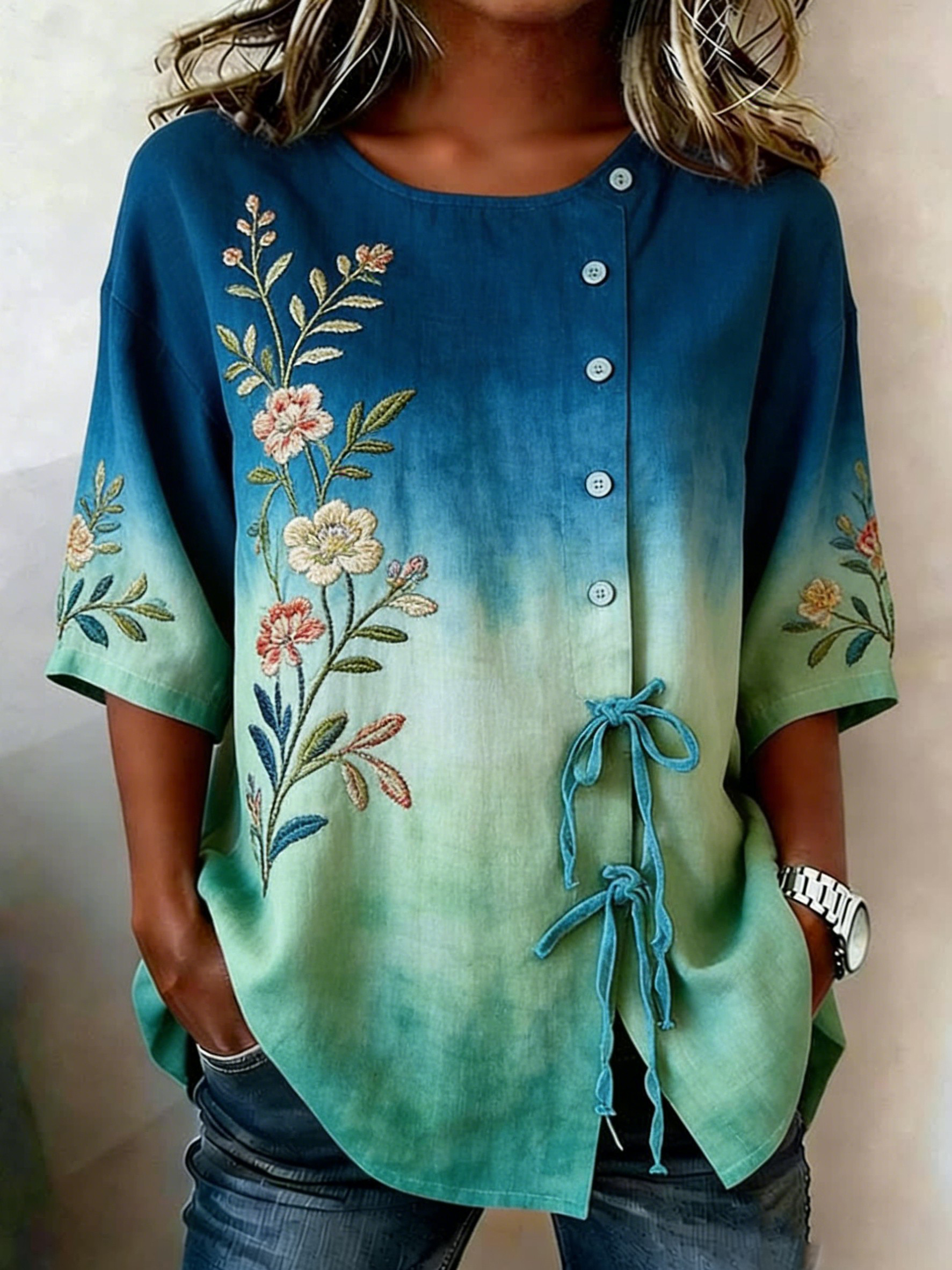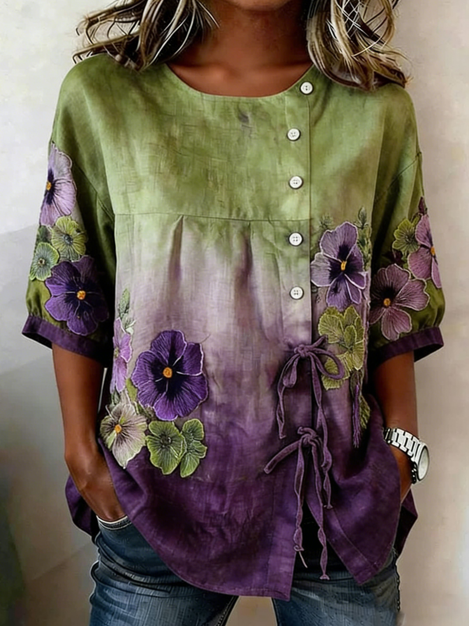 Women's Casual Floral Linen Shirt