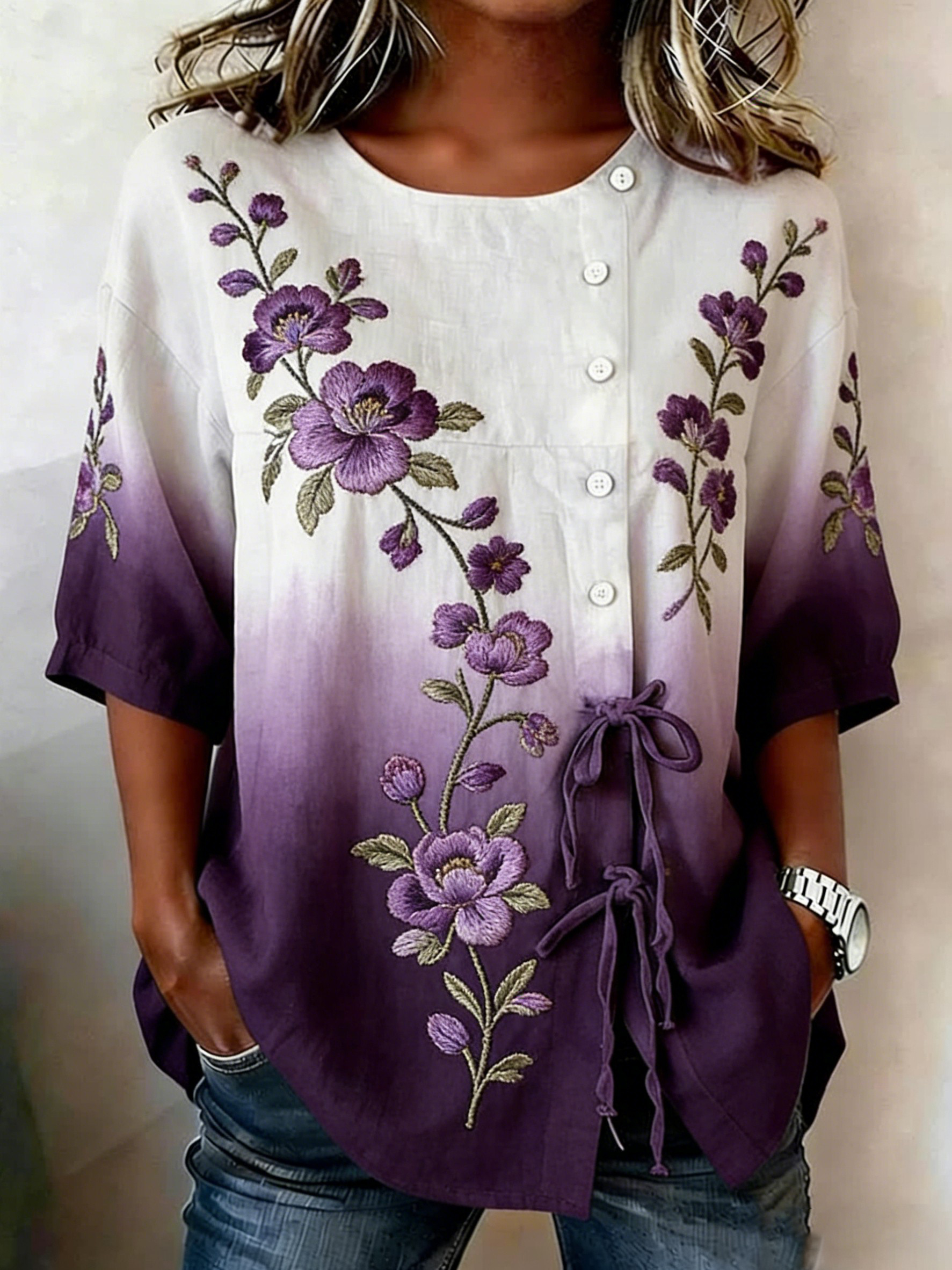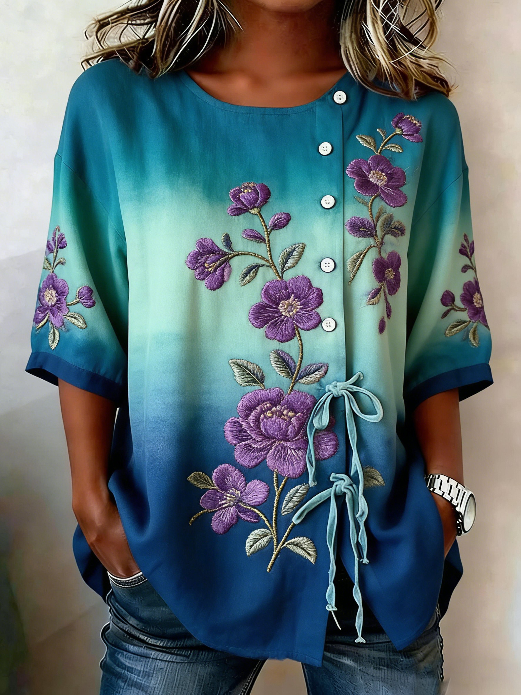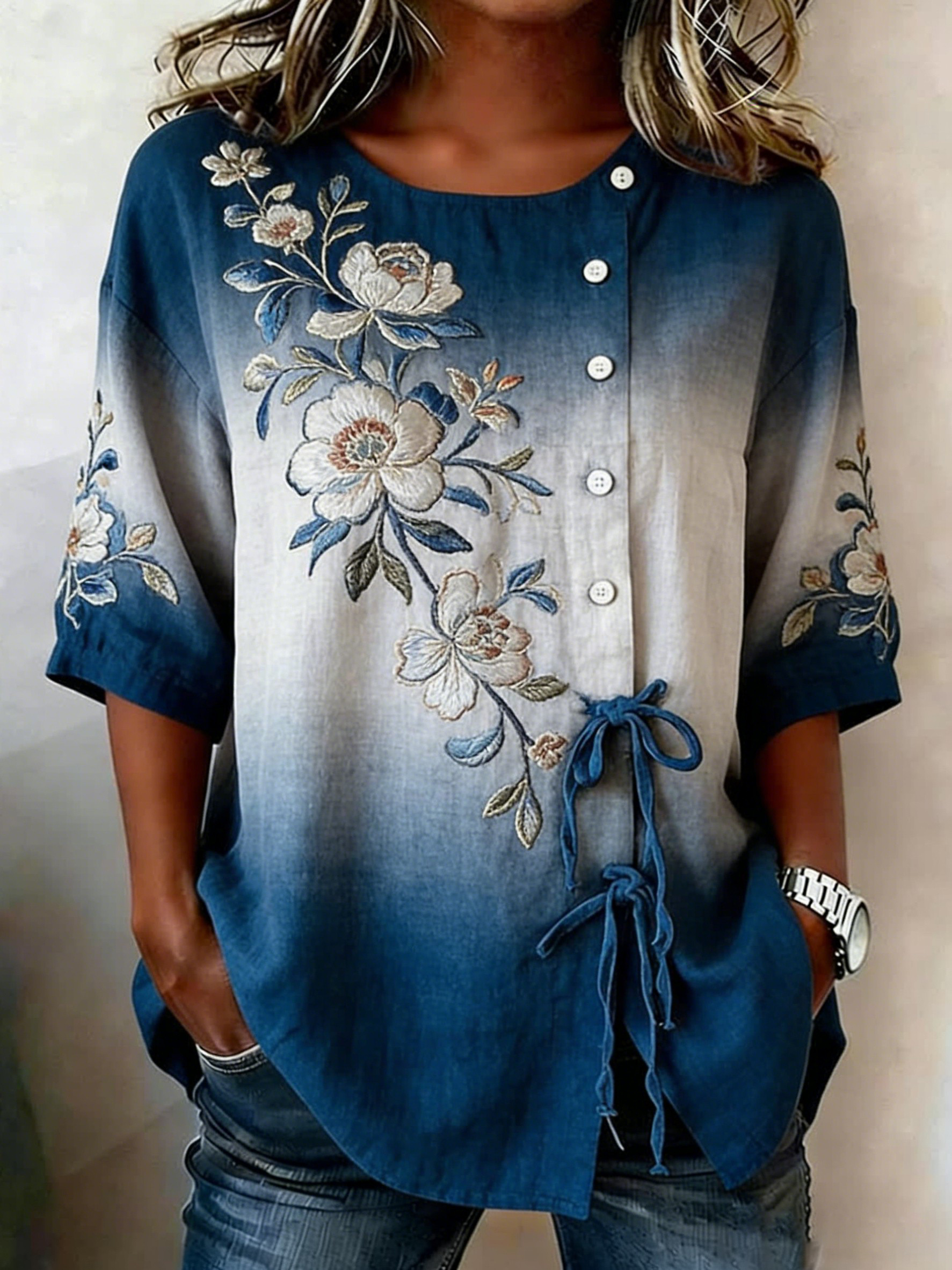 Women's Casual Floral Linen Shirt